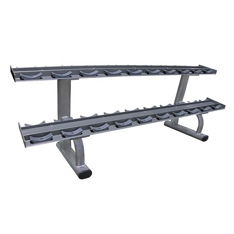 رف الدمبل هو قطعة من المعدات المستخدمة لتخزين وتنظيم الدمبل. يتكون عادة من إطار قوي مع مستويات متعددة أو أرفف لعقد الدمبل. يساعد الحامل على إبقاء الدمبل عن الأرض وبطريقة أنيقة ومنظمة ، مما يسهل اختيار الأوزان المطلوبة والوصول إليها أثناء التمرين. تأتي رفوف الدمبل بأحجام وتصميمات مختلفة لاستيعاب كميات وأنواع مختلفة من الدمبل.