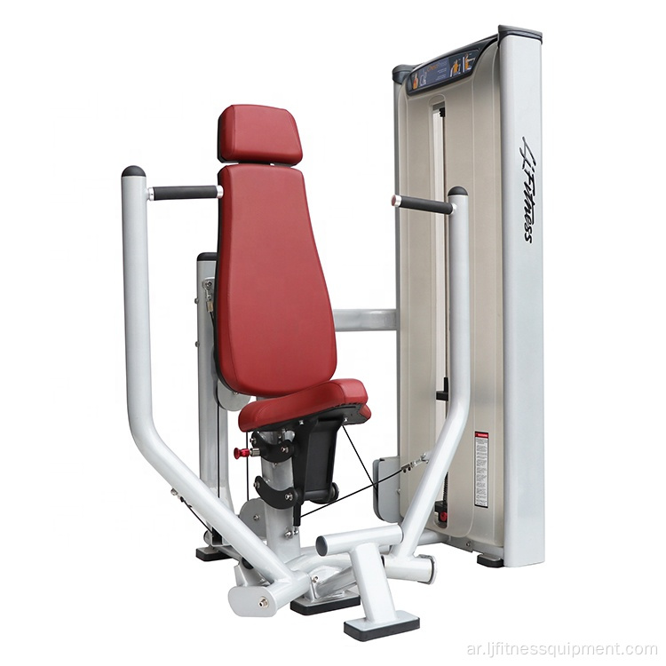 5. آلة ذبابة الصدر: تستهدف هذه الآلة عضلات الصدر على وجه التحديد وتحاكي حركة تمرين ذبابة. تجلس أو تستلقي وتتجمع بين ذراعيك في حركة معانقة ضد المقاومة.