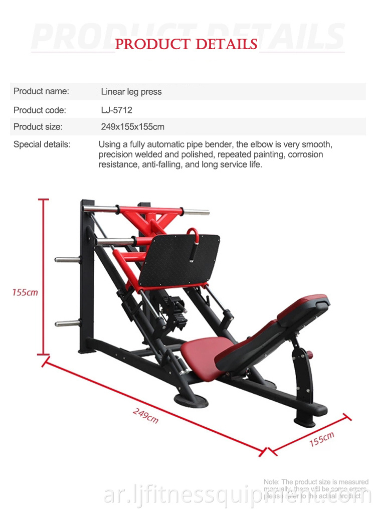 آلة الضغط على الساق الخطية هي نوع من معدات اللياقة البدنية التي تستهدف العضلات في الجزء السفلي من الجسم ، وخاصة عضلات الفخذ ، أوتار الركبة ، والغلوت. يتكون من مقعد ومنصة تتحرك على طول مسار خطي. يجلس المستخدم على المقعد مع أقدامهم على المنصة ويدفع المنصة بعيدًا عنهم باستخدام أرجلهم. هذه الحركة تشرك عضلات الساق وتوفر مقاومة لبناء القوة ونغمة العضلات. توجد آلة الصحافة الخطي عادة في صالات رياضية ومراكز اللياقة البدنية.