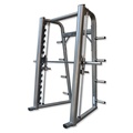 آلة سميث هي قطعة من معدات رفع الأثقال تتكون من حديد متصل بمسار عمودي. تم تثبيت الحديد في مكانه ويمكن أن يتحرك لأعلى ولأسفل على طول المسار. عادةً ما تحتوي الجهاز على مصيد أمان على ارتفاعات مختلفة ، مما يسمح للمستخدمين بأداء تمارين مثل القرفصاء ، وضغط المقعد ، وضغط الكتف مع استقرار إضافي وتقليل خطر الإصابة. غالبًا ما يتم استخدام آلة Smith في صالات رياضية كبديل للأوزان المجانية ، حيث توفر مجموعة موجهة من الحركة ويمكن أن تكون أكثر أمانًا للمبتدئين أو أولئك الذين لديهم تنقل محدود. ومع ذلك ، يجادل البعض بأن مسار الحديد الثابت يحد من أنماط الحركة الطبيعية ولا يشرك عضلات الاستقرار بشكل فعال مثل الأوزان الحرة. من المهم أن نلاحظ أنه على الرغم من أن آلة Smith يمكن أن تكون أداة مفيدة لبعض التمارين ، إلا أنه لا ينبغي الاعتماد عليها كطريقة وحيد لتدريب القوة. يوصى بدمج مجموعة متنوعة من المعدات والتمارين في روتين اللياقة بشكل جيد.