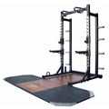 رف القرفصاء مع منصة عبارة عن قطعة من معدات الصالة الرياضية التي تجمع بين رف القرفصاء أو رف الطاقة مع منصة رفع. يتم استخدام هذا الإعداد عادةً من قبل رفع الأثقال ، ورفاق Powerlifters ، وأولئك الذين يقومون بمصاعد مركبة ثقيلة مثل القرفصاء ، والرؤلات المميتة ، والضغط العلوي. يتكون جزء رف القرفصاء من المعدات عادة من وظيفتين مستقيمتين مع إعدادات ارتفاع قابل للتعديل ، مما يسمح للمستخدمين بتعيين الحديد في الطول المطلوب لممارسة التمارين المحددة. يتضمن الرف أيضًا قضبان السلامة أو أذرع نصاب يمكن ضبطها للقبض على الحديد إذا فشل الرافع في إكمال التكرار.